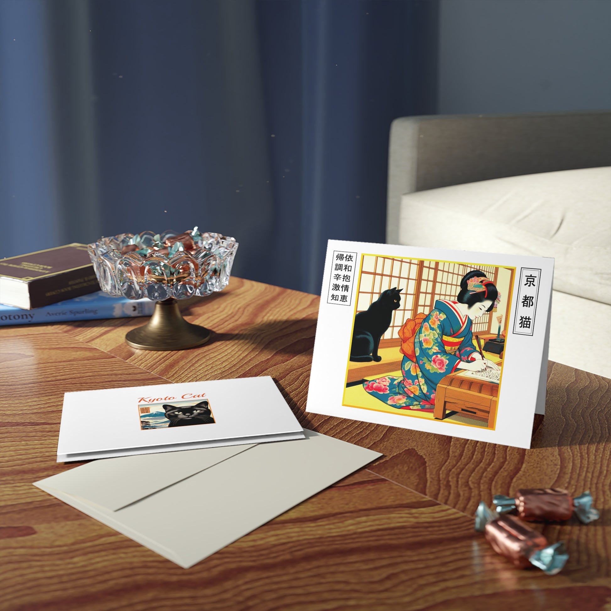Japanese Cat-Themed Greeting Cards, Elegant Geisha Stationery, Artful Note Cards, Unique Gift Cards, Gifts for Writers