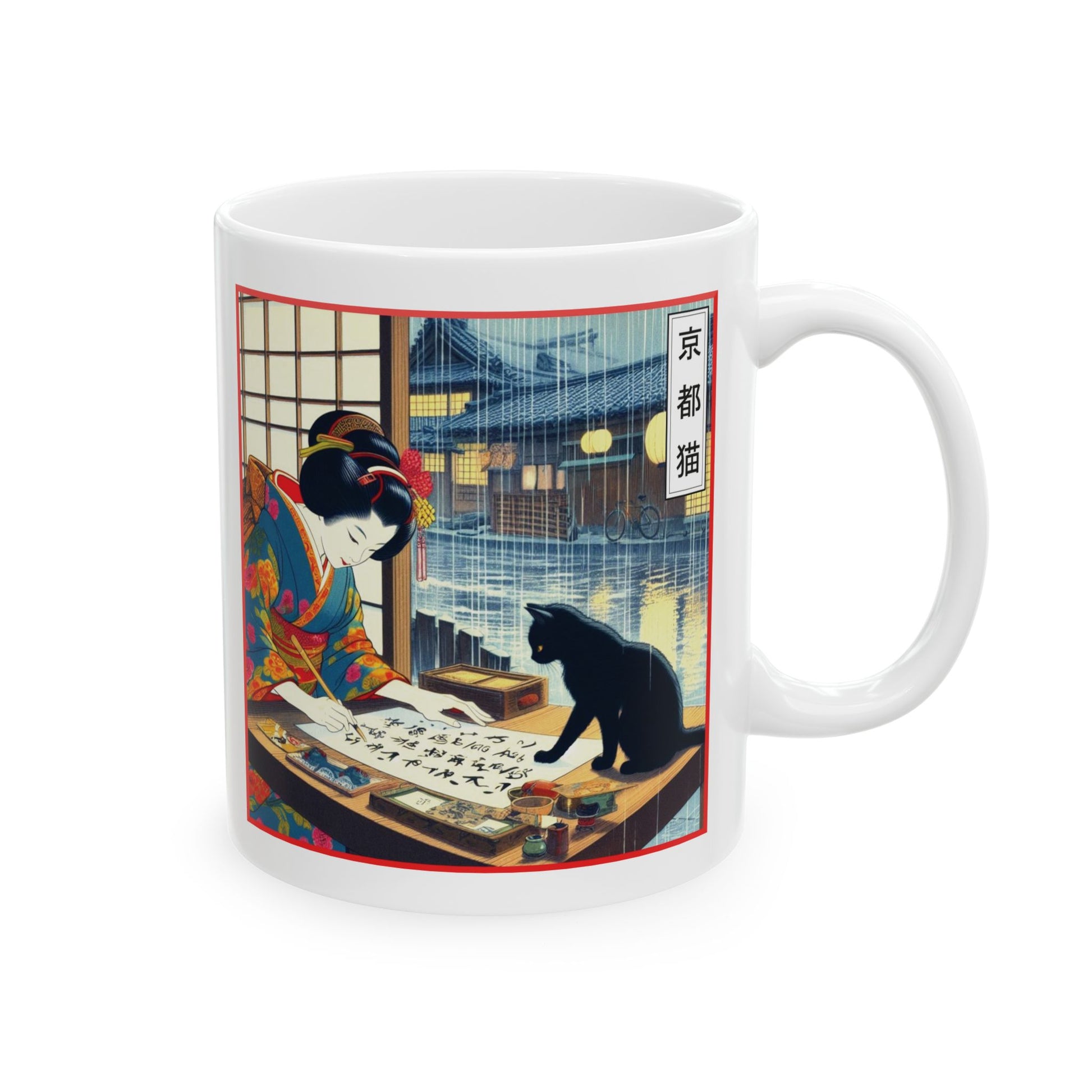 Start your day with a sip of inspiration from our Calligraphy Mugs. Featuring the Kyoto Cat's exploration of this traditional form of Japanese art. Purrfect for coffee or tea lovers, let the elegance and artistry of these mugs elevate your morning routine.