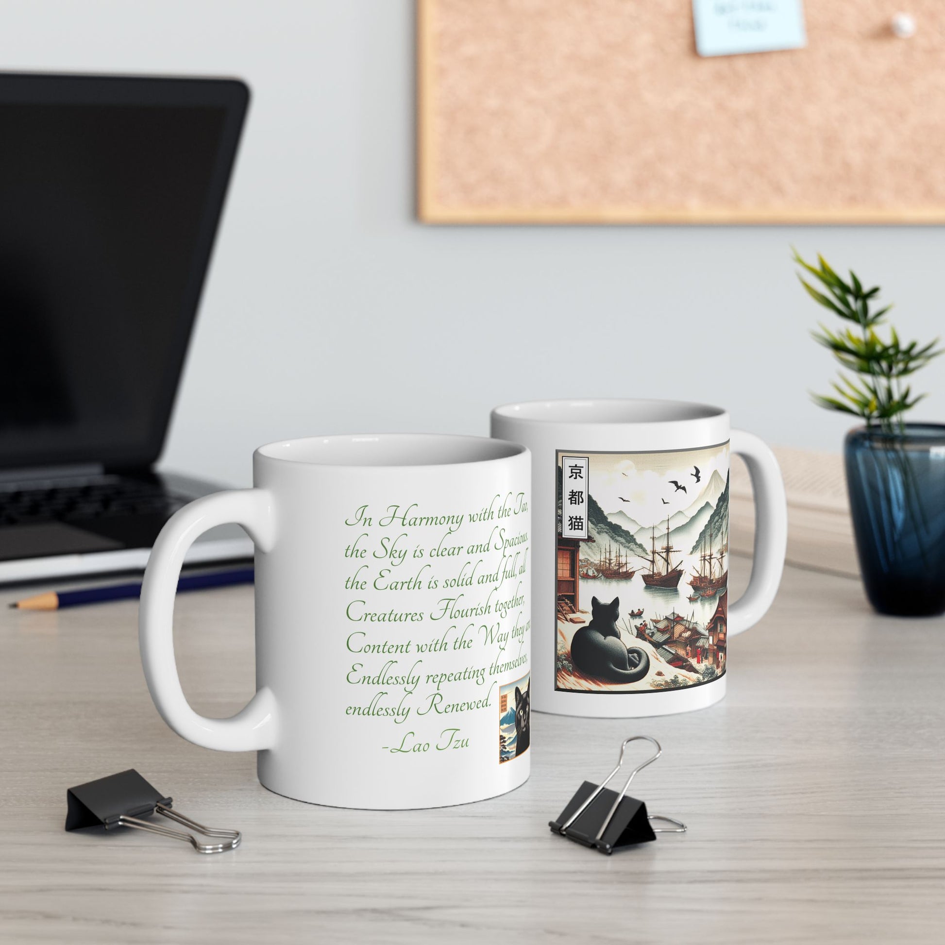 Gift for Cat Lovers, Home Decor, Unique Kitchenware, Vintage Japanese Art Mug, Zen Sayings