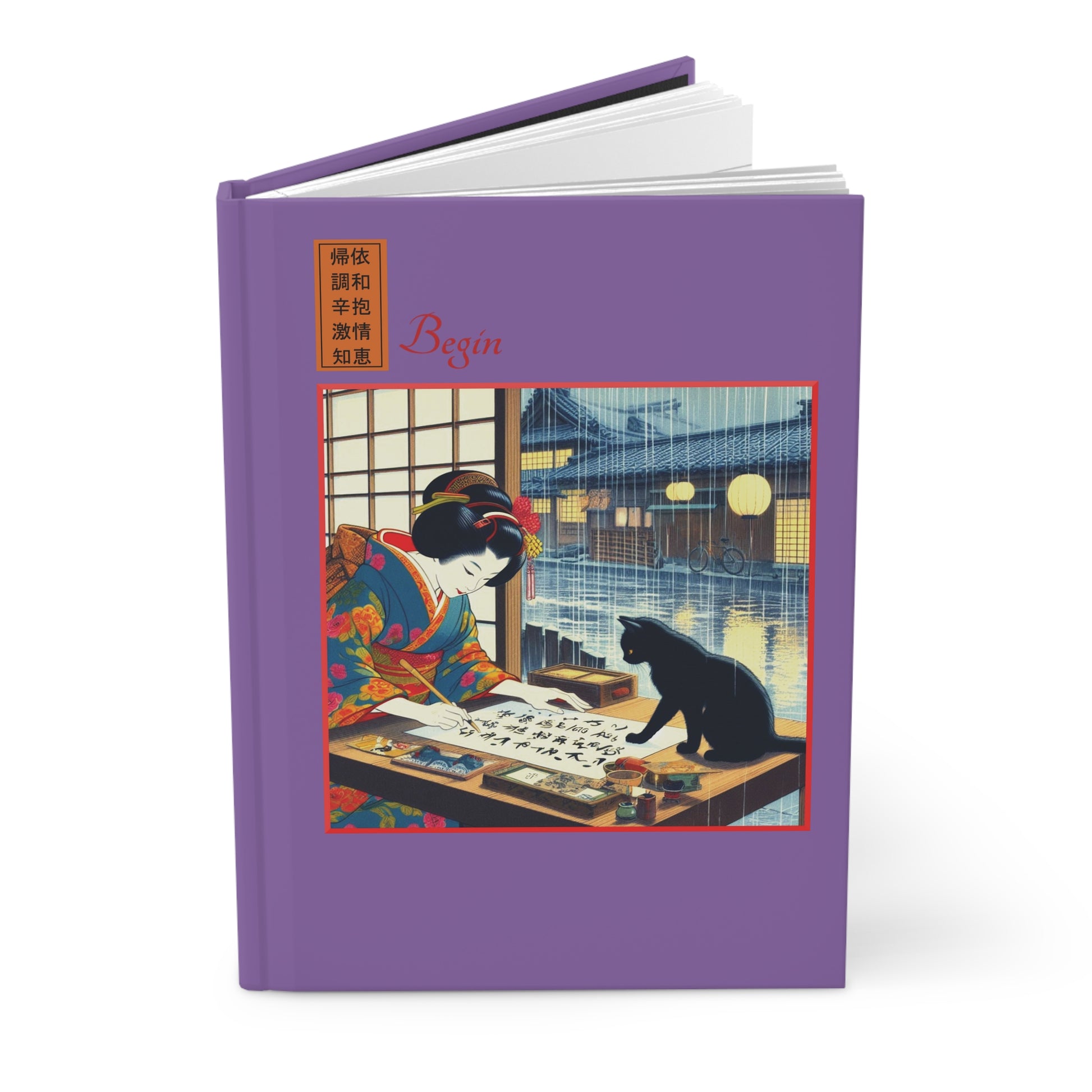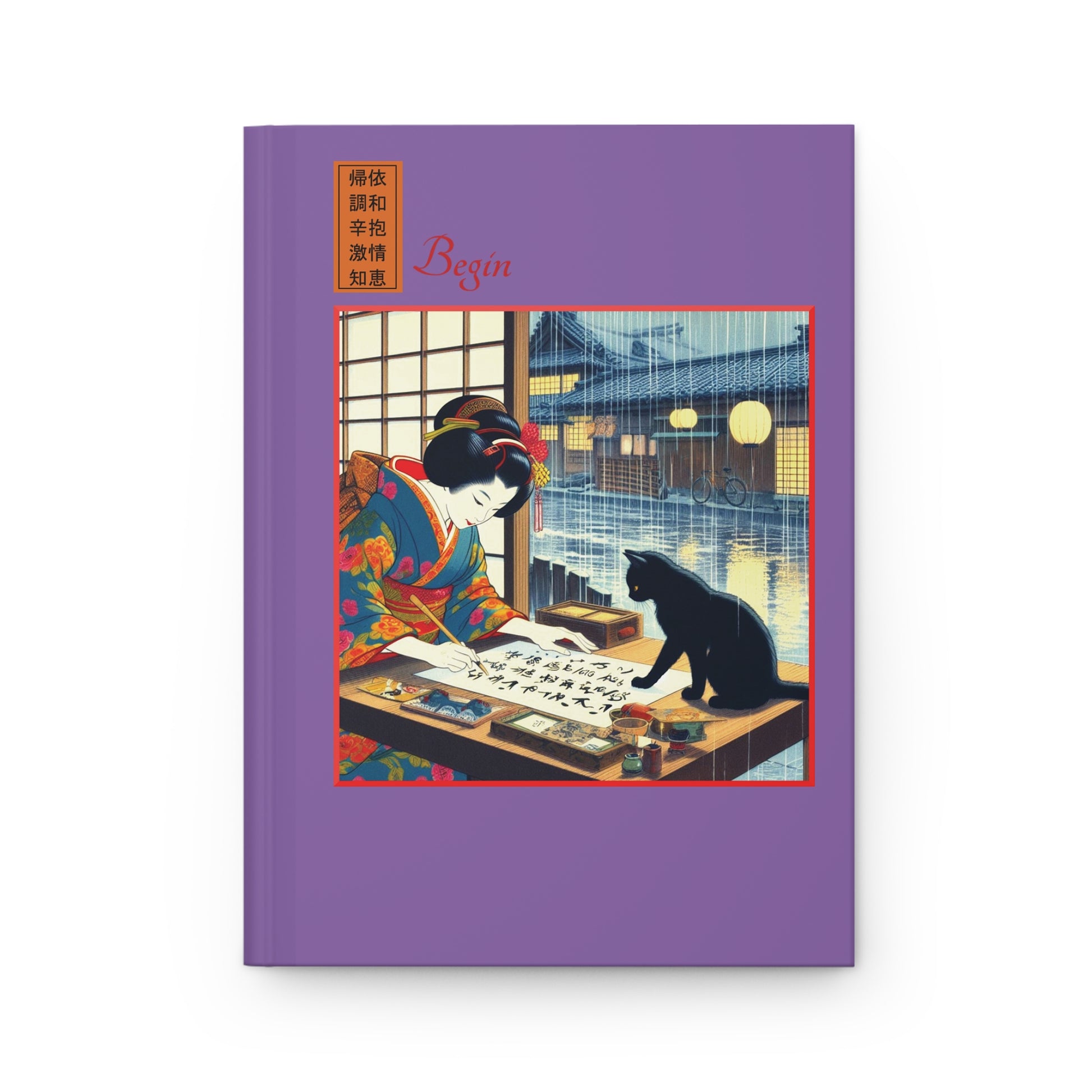 Elegant Diary for Cat Lovers, Japanese Art Journal, Gift for Artists, Personal Notebook, Stylish Stationery