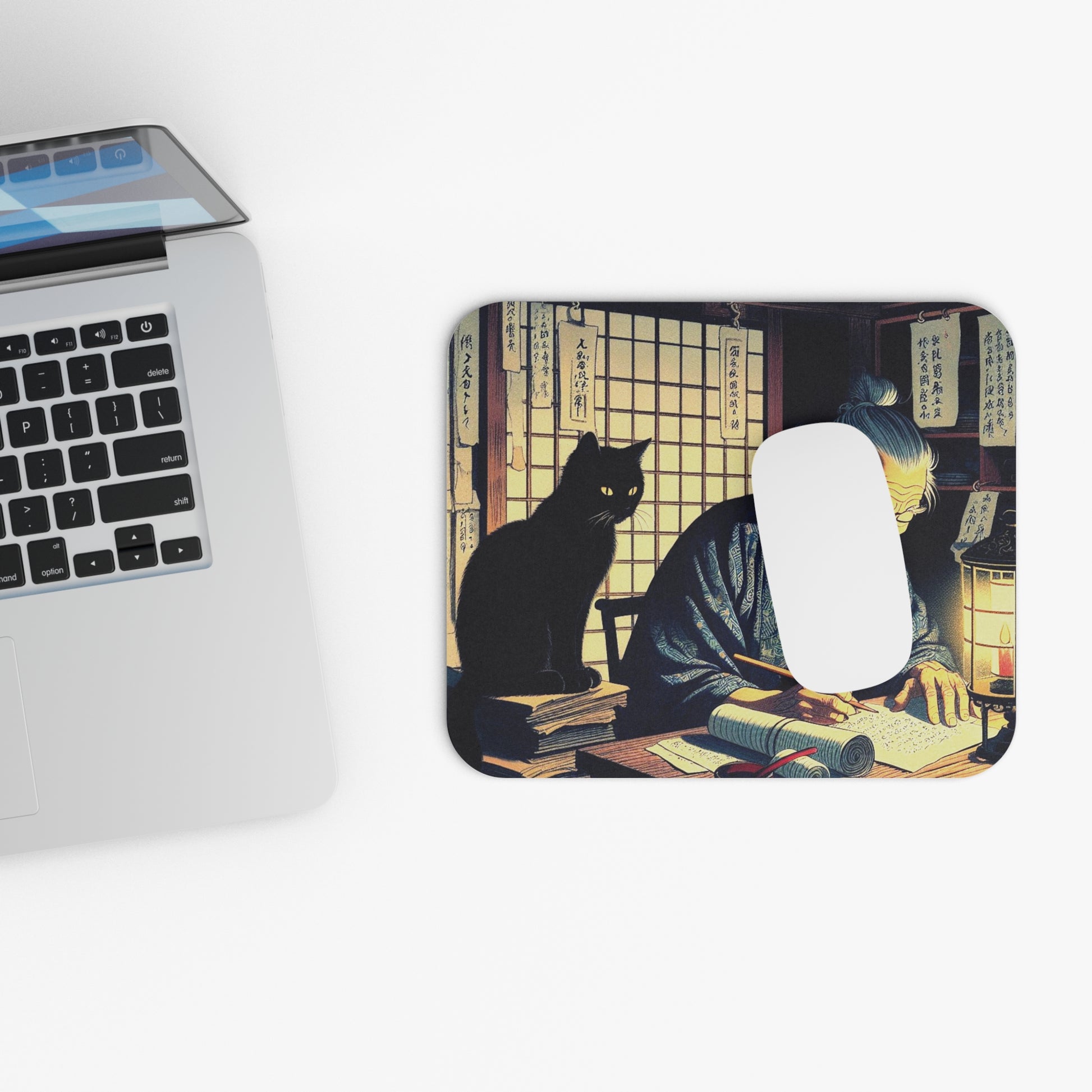 Vintage Office Decor, Gift for Writers, Cat Lovers, Japanese Art Mousepad, Aesthetic Workspace