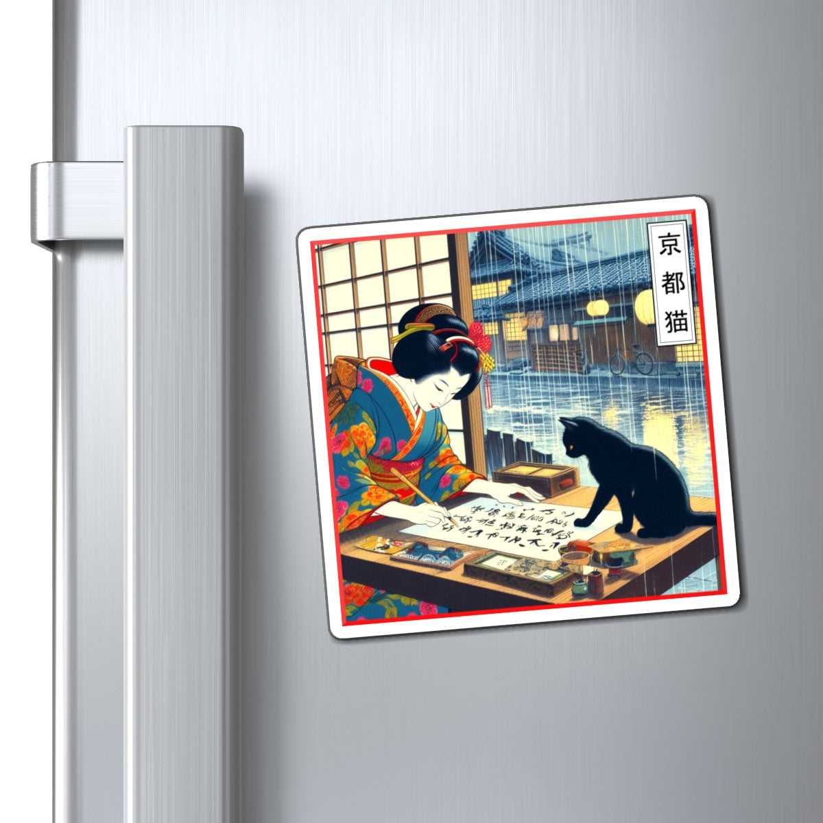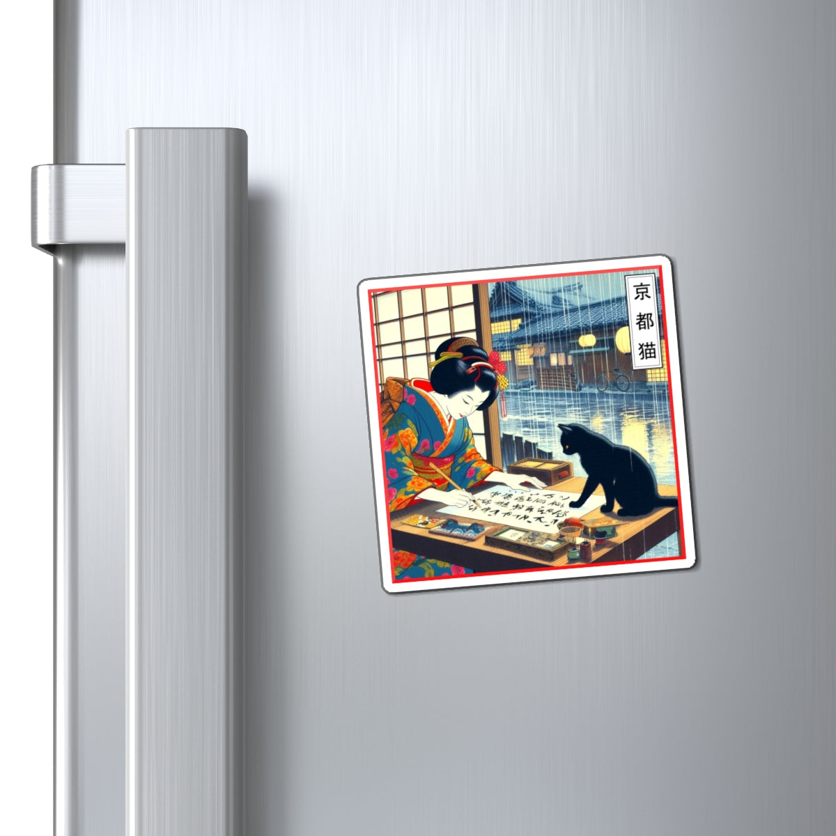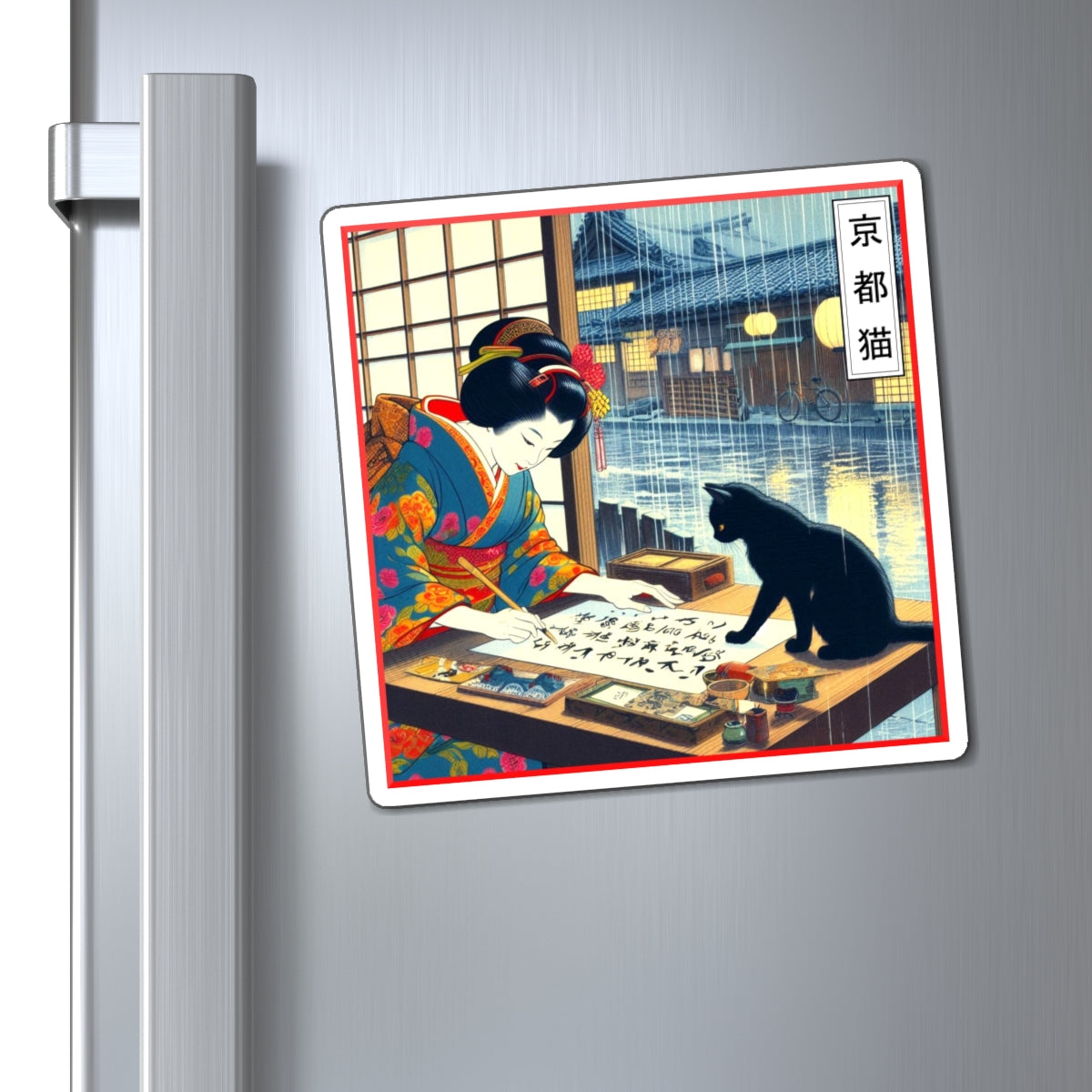 Japanese Geisha Art Magnet, Zen Inspiration, Refrigerator Decor, Cat Lover Decor, Unique Kitchen Accent