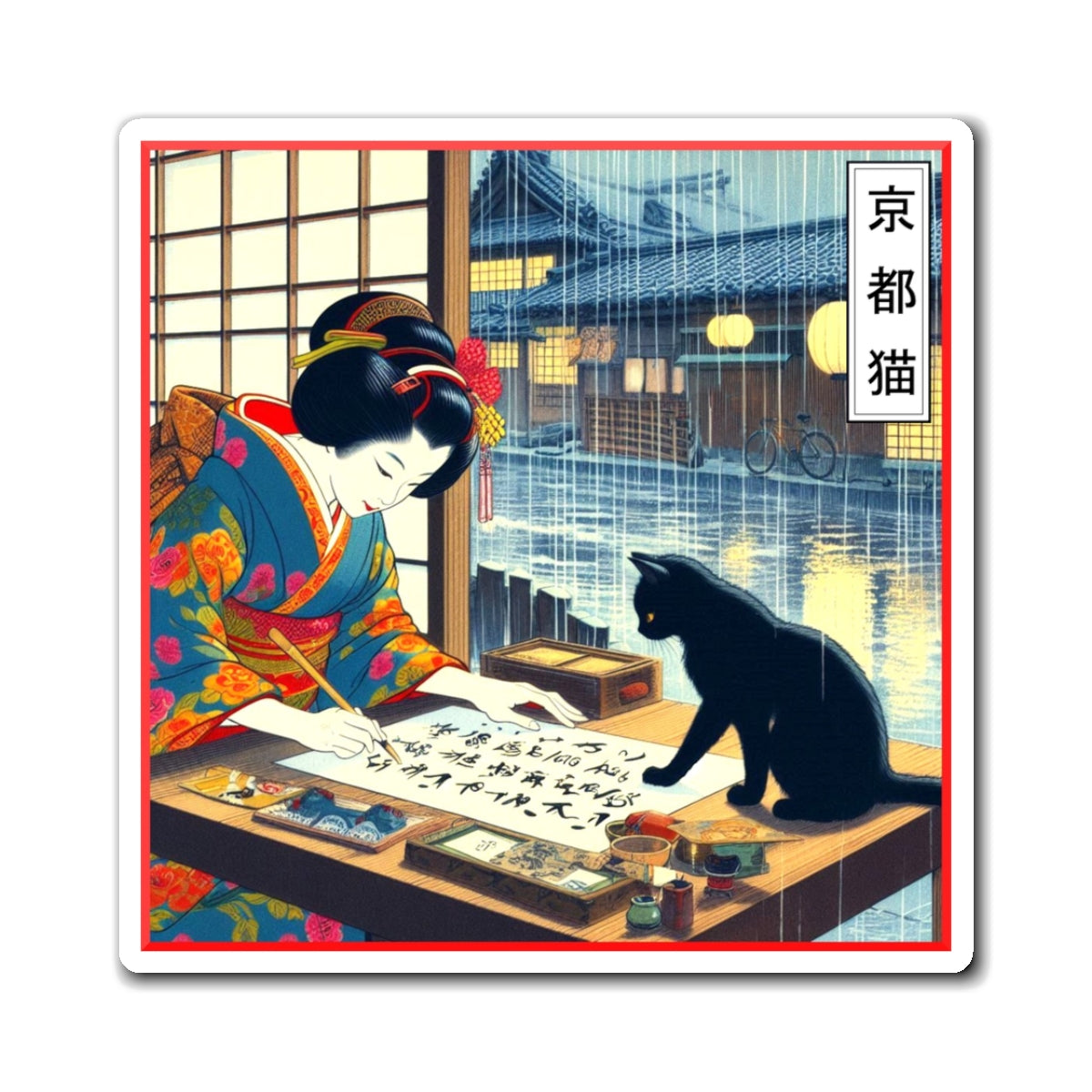 Add a touch of elegance to your space with our collection of Calligraphy Magnets featuring the Kyoto Cat patiently observing the practice of this delicate and ancient art. Bring home a piece of Japanese culture and let the beauty of calligraphy inspire your daily life.