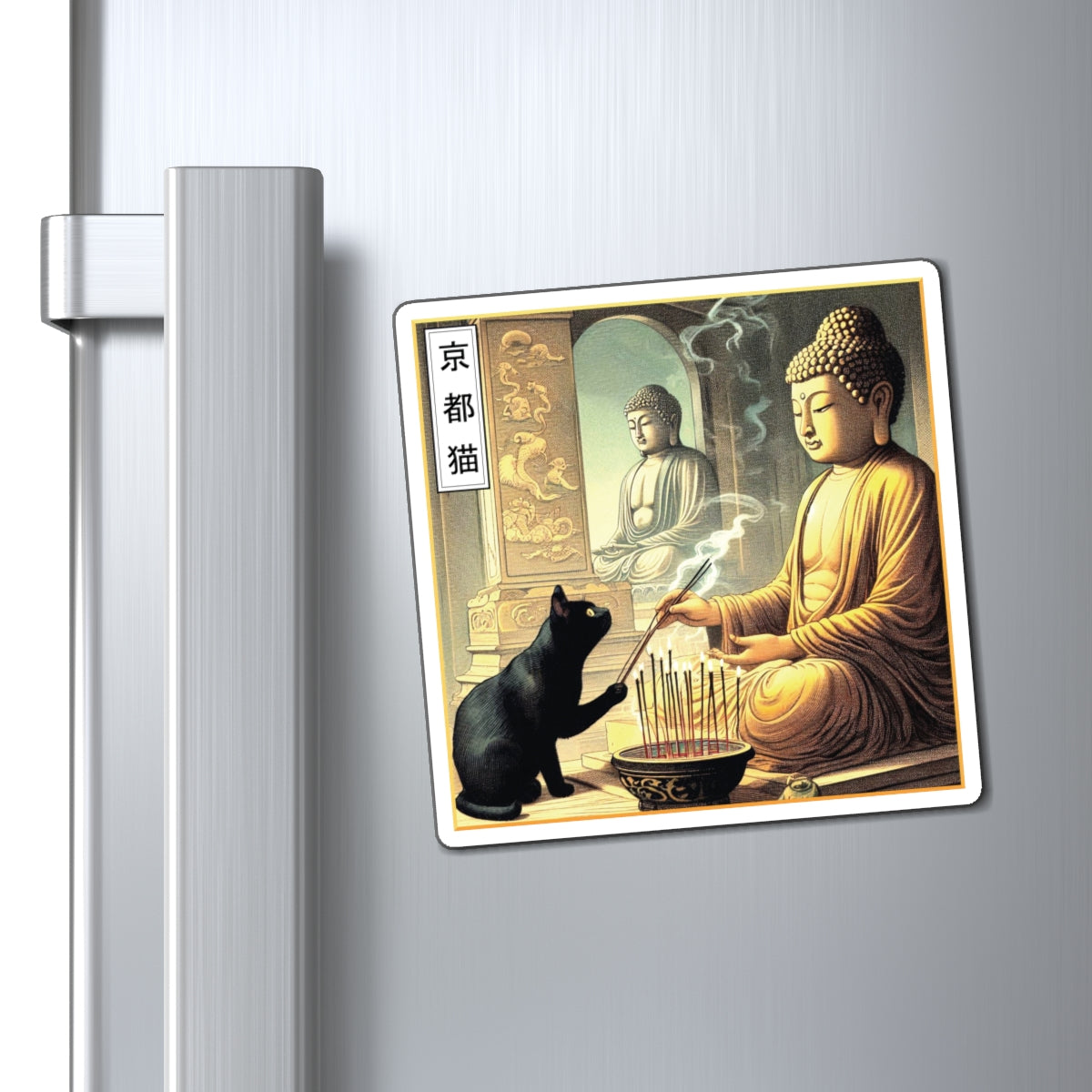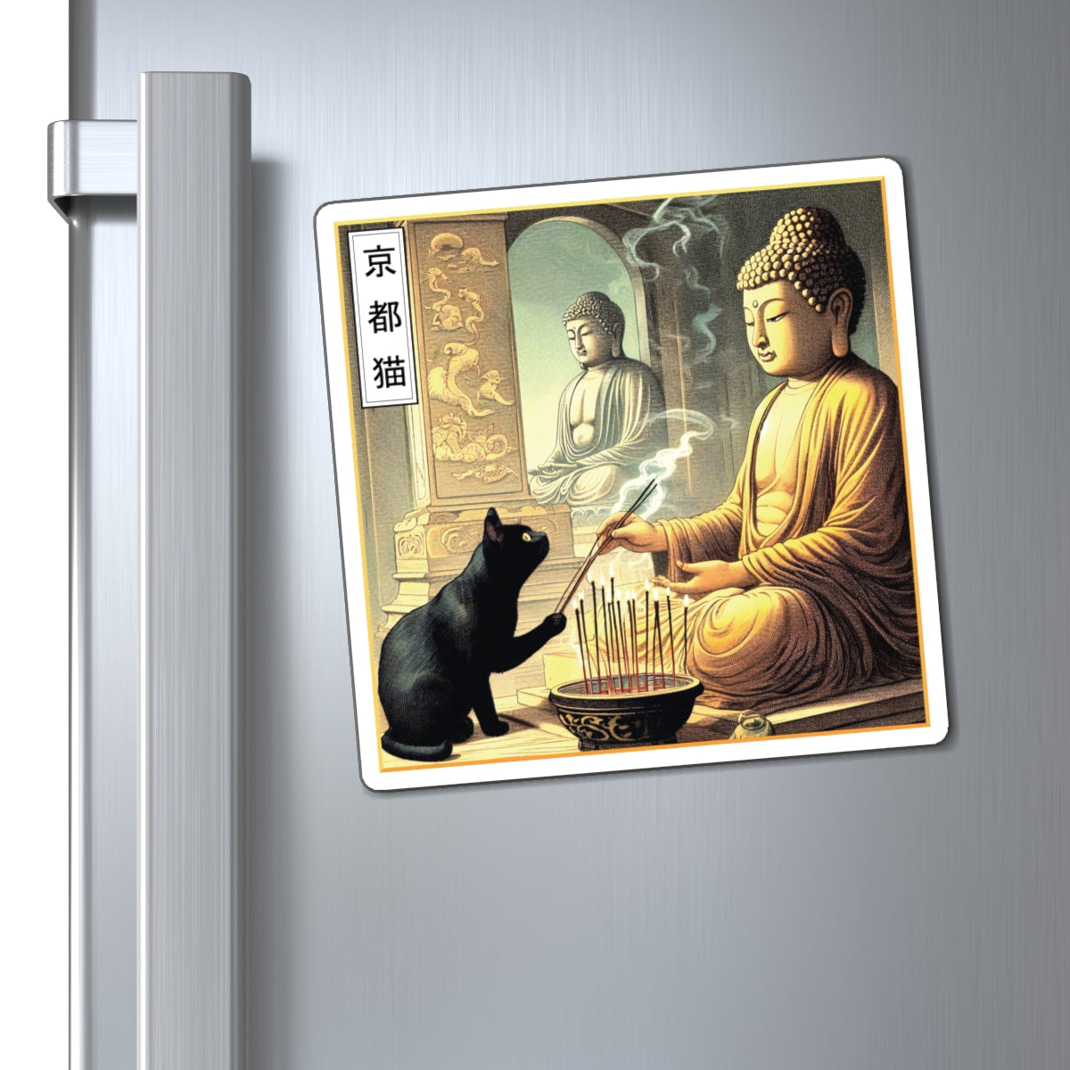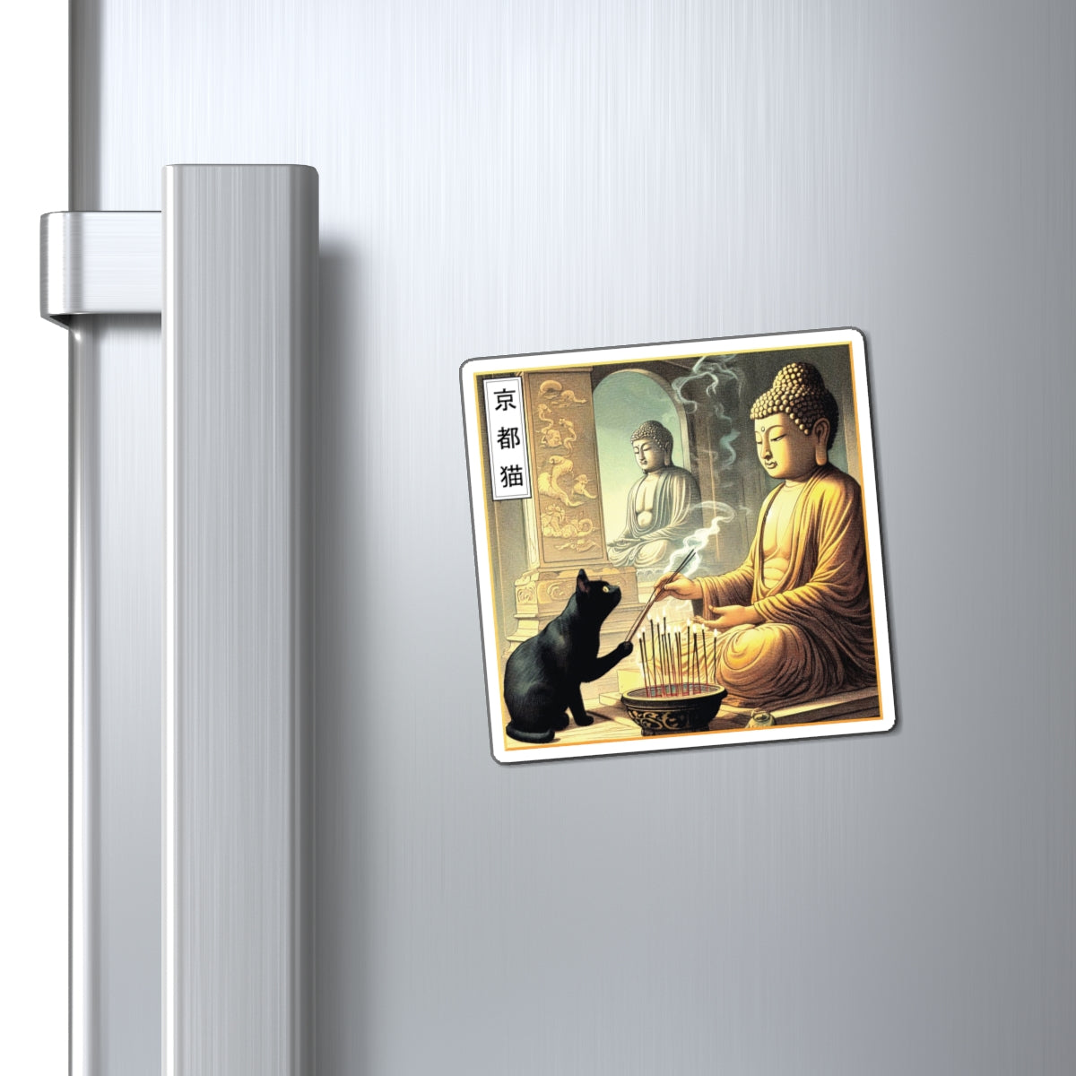 Buddha Cat Magnet, Peaceful Home Decor, Spiritual Gift, Yoga Studio Decor, Unique Refrigerator Magnet, Gifts for Cat Lovers