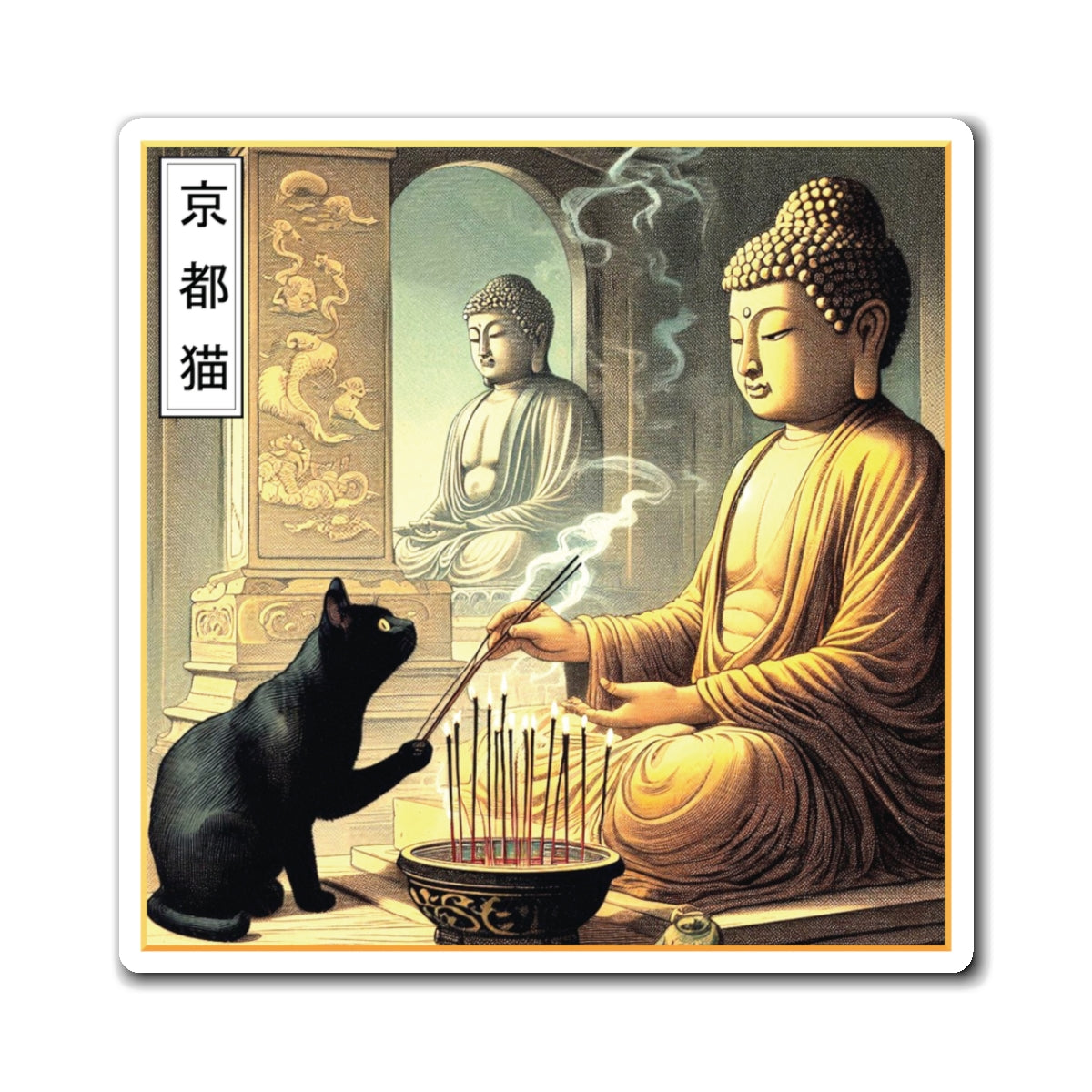 Bring tranquility and devotion into your space with our Buddhist Temple magnet series. More than just a decoration, they’re a reminder of inner peace and spiritual dedication. Purrfect for adorning your fridge or workspace. Let the Kyoto Cat guide your thoughts and inspire your day