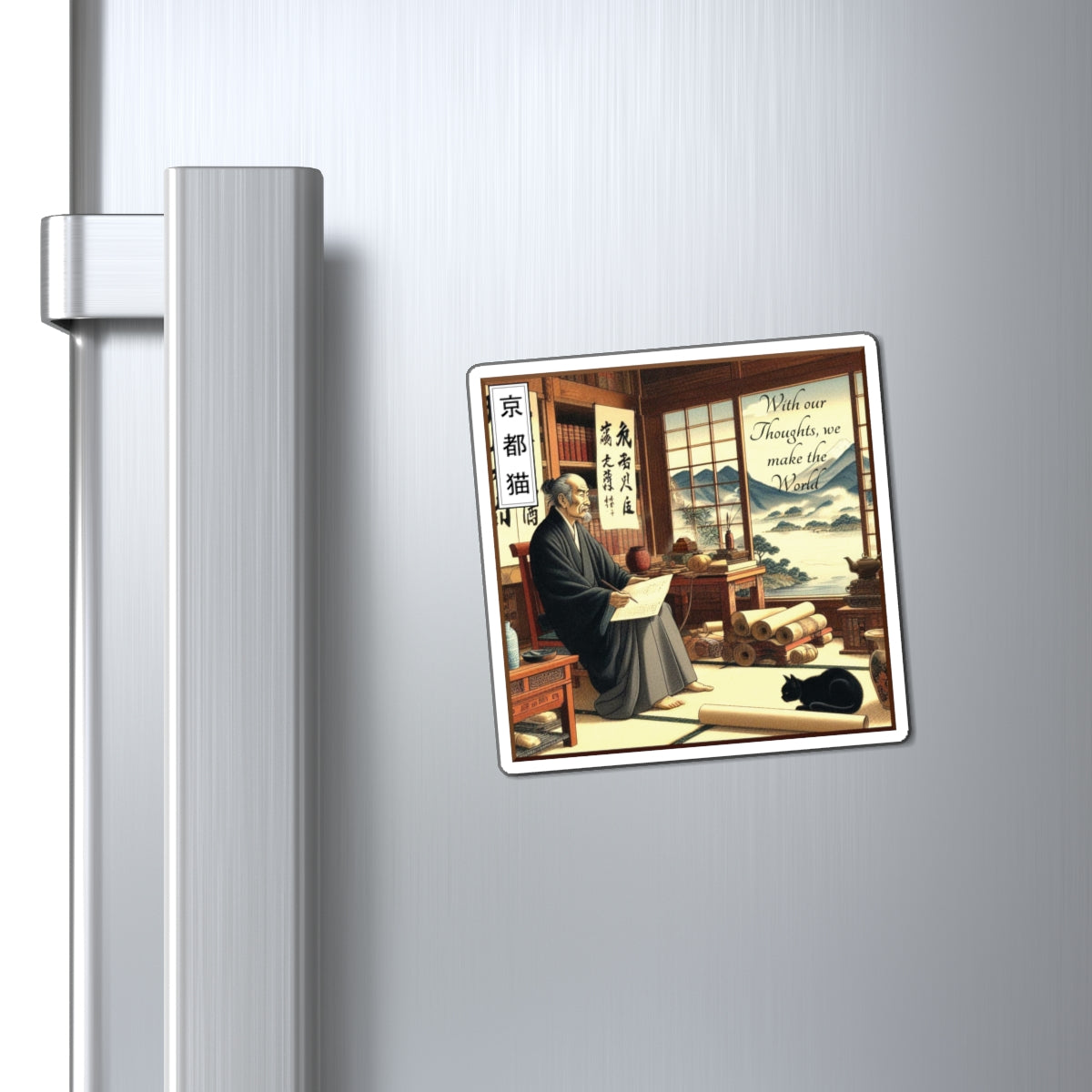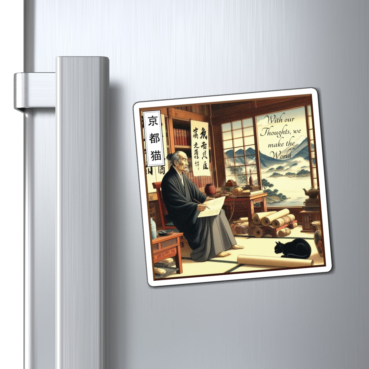 Inspirational Art Magnet, Zen Home Décor, Gift for Meditation Lovers, Motivational Kitchen Magnet, Japanese Aesthetic Fridge Magnet, Gifts for Cat Lovers