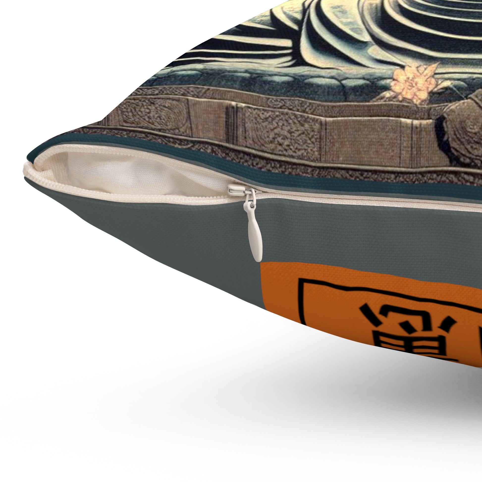 Japanese Throw Pillow, Meditation Decor, Zen Home Accent, Spiritual Gift, Mindfulness Cushion, Yoga Accessory, Gifts for Cat Lovers