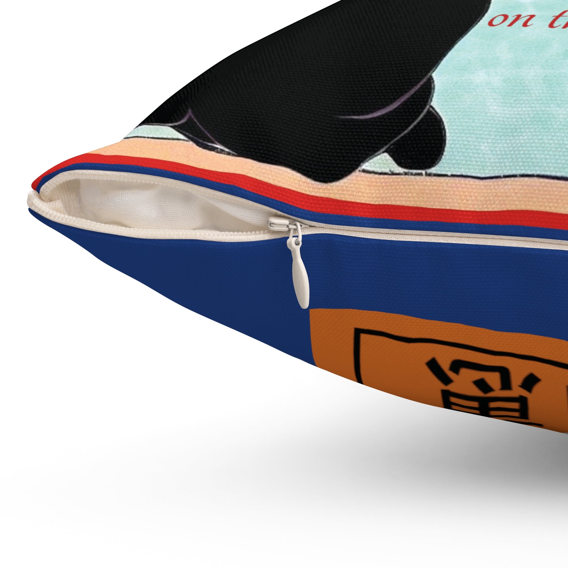 Meditation Decor, Zen Home Accent, Gift for Mindfulness, Asian Art Cushion, Cat Lovers, Eastern Philosophy
