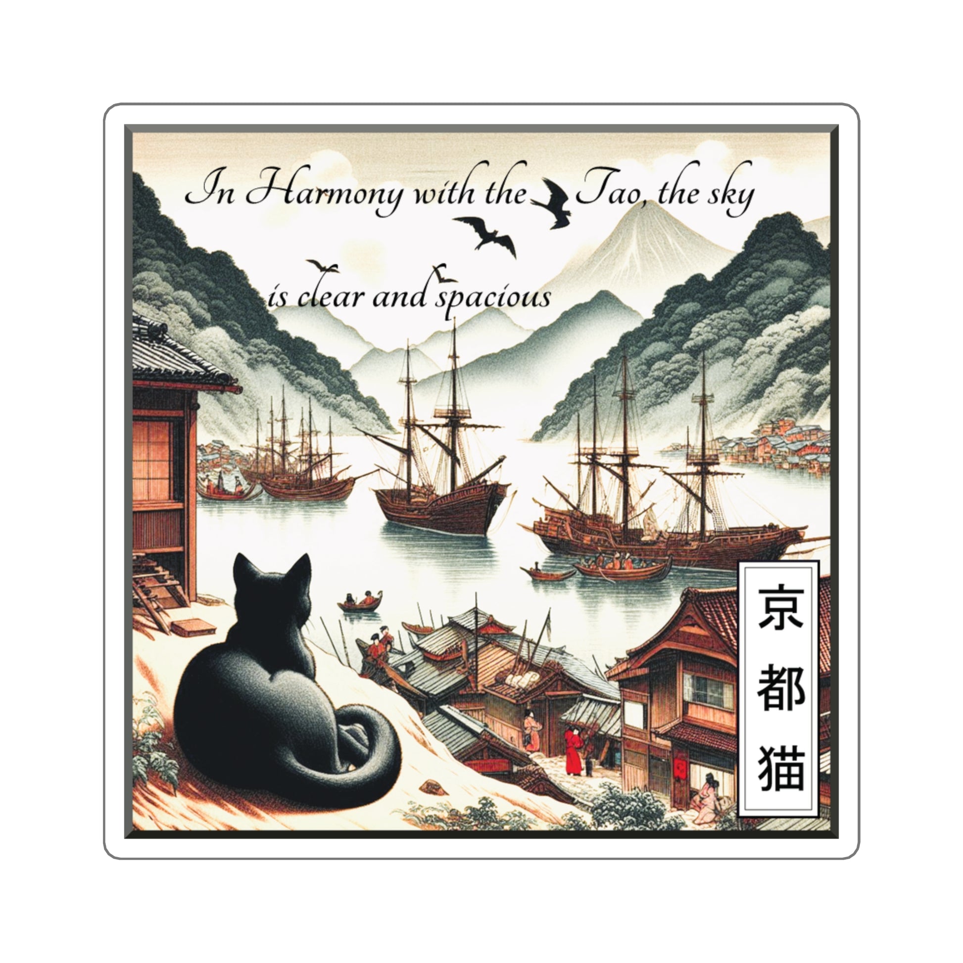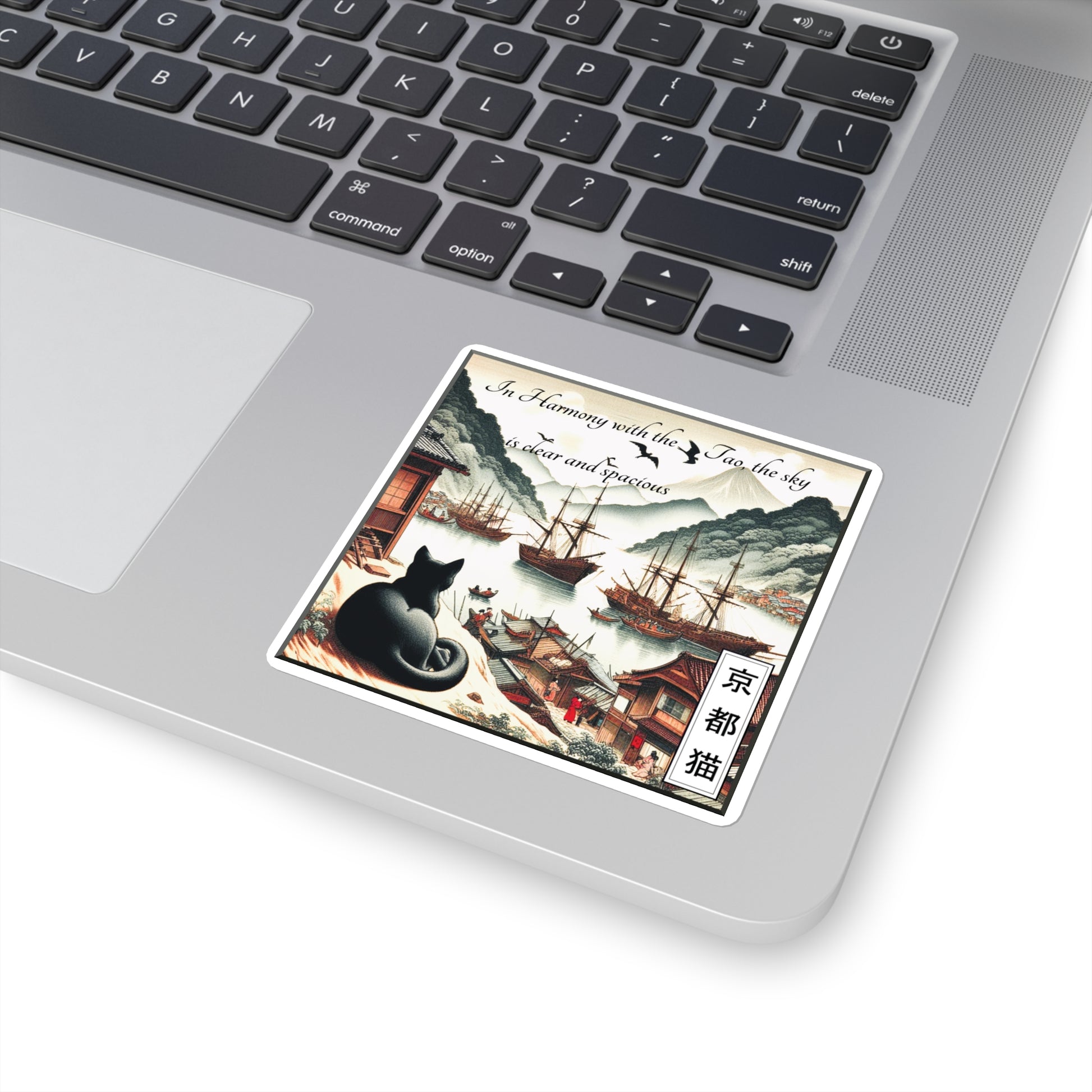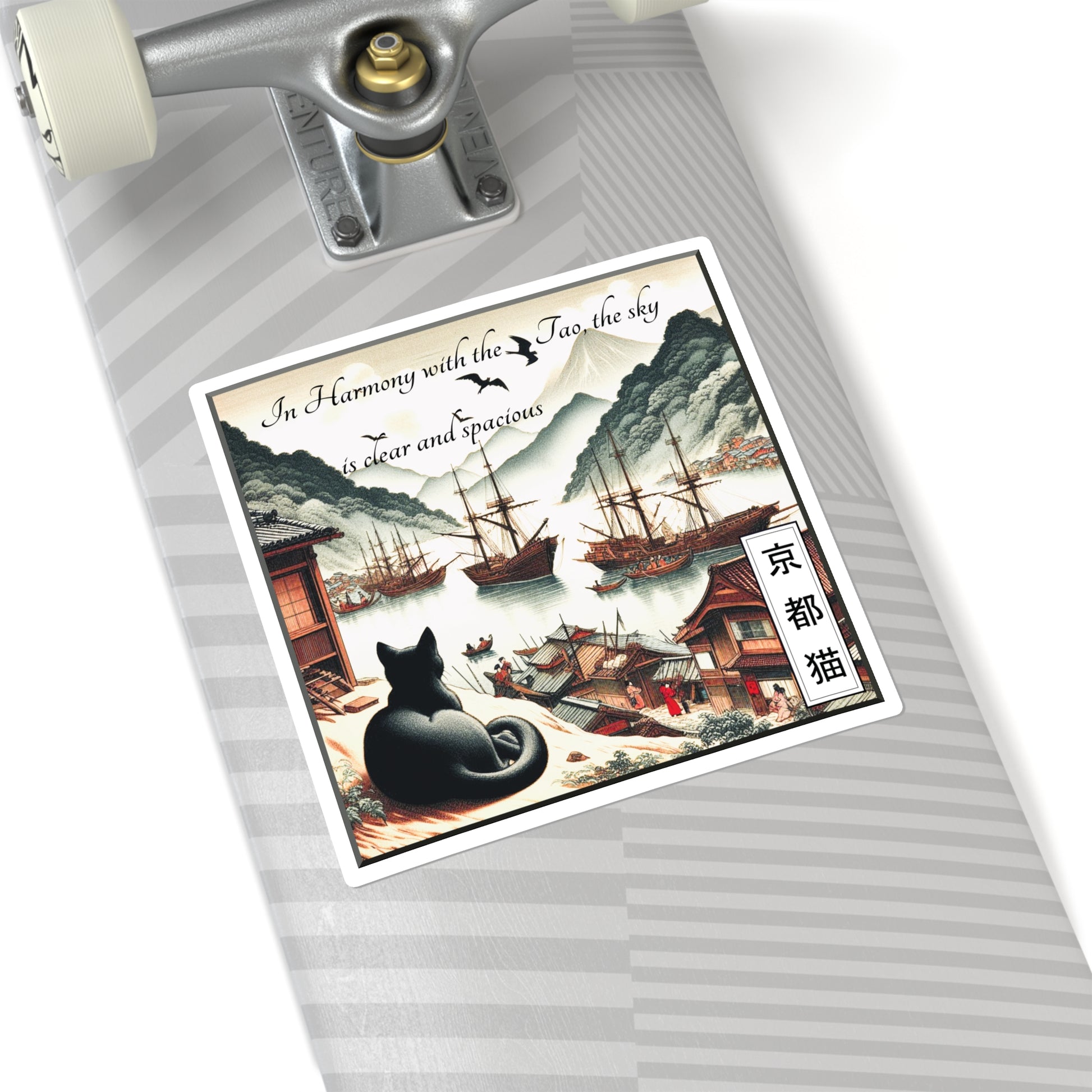 Zen-Inspired Stickers, Tranquil Artwork Decor, Mindfulness Gifts, Japanese Aesthetic, Inspirational Quotes, Gifts for Cat Lovers